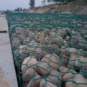 pvc coated gabion mesh for river block is a cage made of Hexagonal wire, the wire diameter is based on the size of hexagonal. If use metal coated wire, the diameter to be 2.0mm-4.0mm,If use PVC coated wire, The OD to be 3.0-4.5mm, the wire diameter of frame edge is larger than hexagonal wire, In recent years, an emerging zinc-aluminum alloy gabion basket which coated with zinc and aluminum and Mixed rare earth alloy, is more Corrosion resistance than zinc coated gabions.